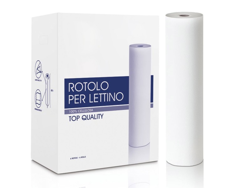 6 Rotoli di Carta BIANCHISSIMA in Pura Cellulosa per Lettino Doppio Velo - 60cm