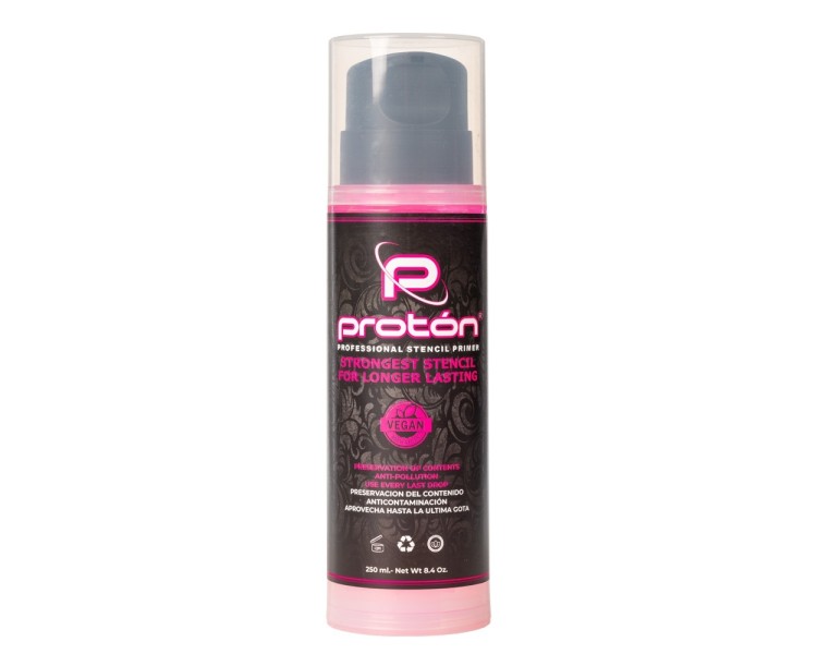 Proton Professional Stencil Primer è nato a Medellin (Colombia) da un gruppo di artisti che hanno cercato di migliorare ciò che già esiste visto che i modelli di tatuaggio sono stati cancellati dalla loro pelle, dando vita a Proton Professional Stencil Primer, lo Stencil più forte mai creato e testato in migliaia di pelli, con una formulazione unica e una durata di oltre 15 ore sulla pelle.