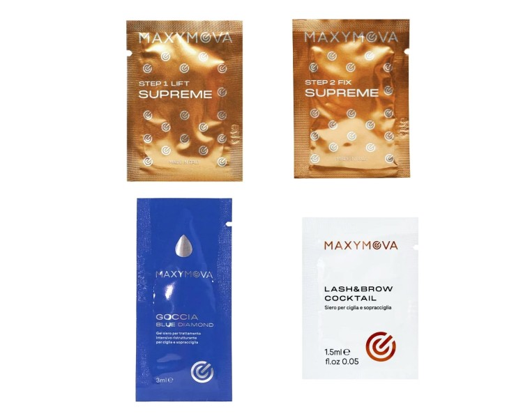 Vuoi provare un nuovo sistema di laminazione? Perché non provare il MAXYMOVA Lamination Supreme Discovery Kit che contiene tutti i passaggi necessari per trasformare le ciglia e le sopracciglia del tuo cliente senza impegnarti in flaconi/bustine più grandi.