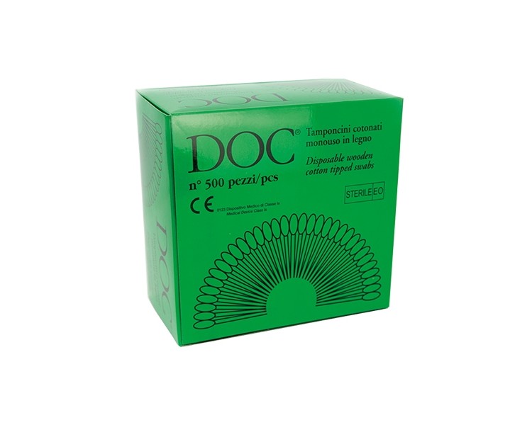 Tamponcini cotonati sterilizzati con ossido di etilene, confezionati singolarmente.